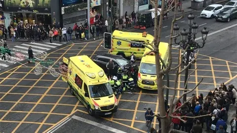 Fuentes de la Policía Local han explicado que el accidente se ha producido en el cruce de las dos calles cuando han colisionado la ambulancia circulaba por Calvo Sotelo, en dirección a El Sardinero, para atender una urgencia, y el coche, que iba por Isabel II.