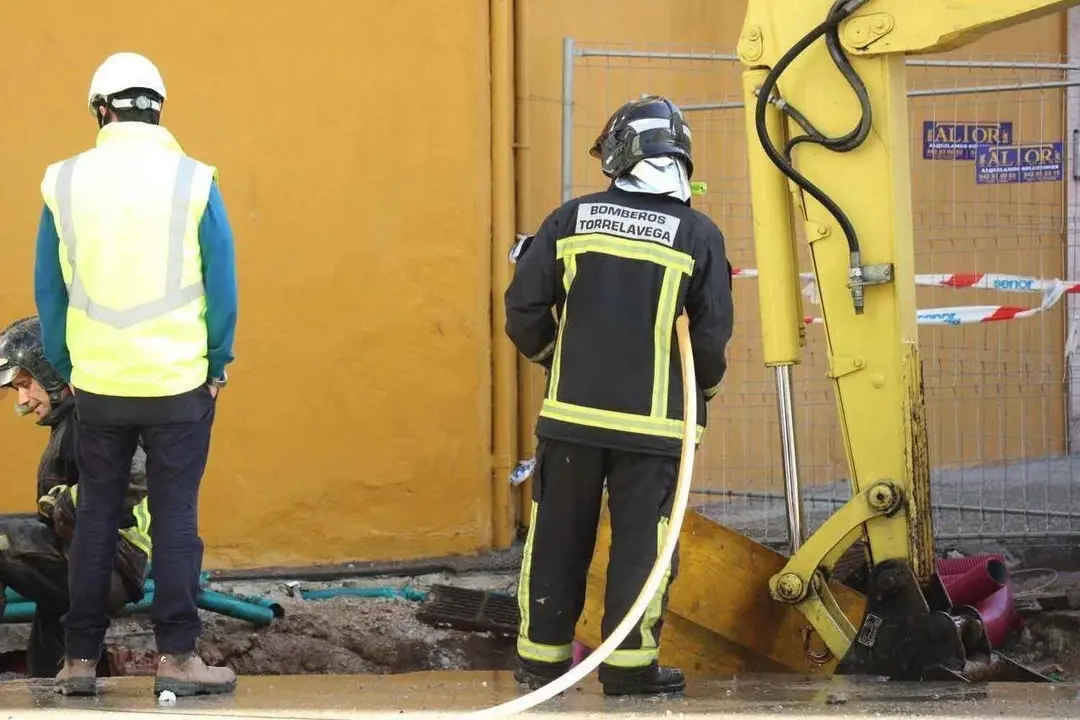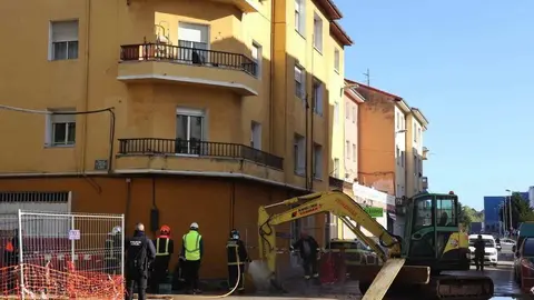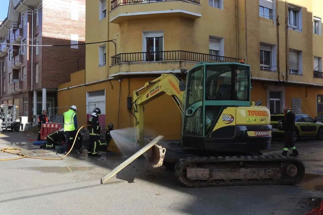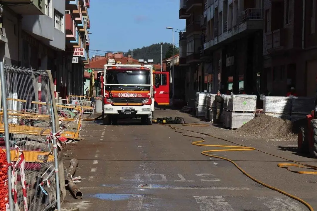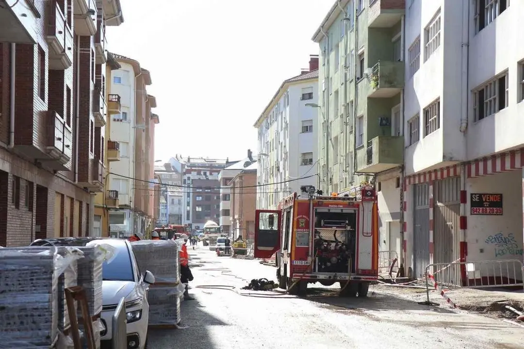 Las obras de mejora en la calle José Gutiérrez Alonso de Torrelavega provocaban la rotura de una tubería de gas con una pala tal como vemos en las imágenes.
