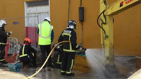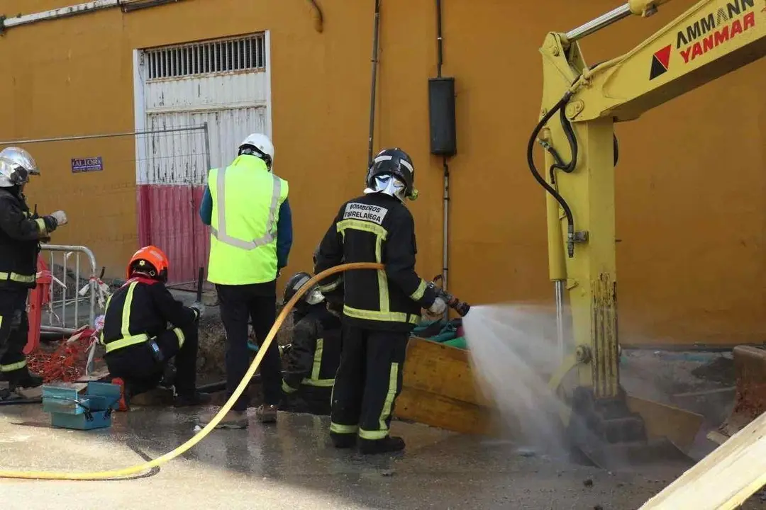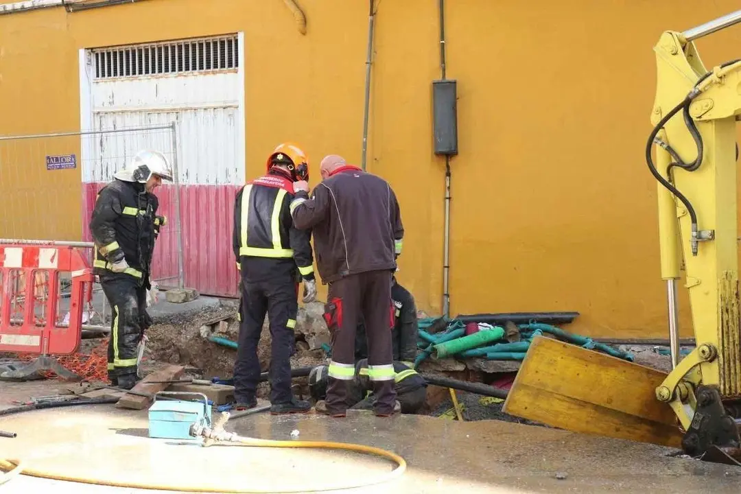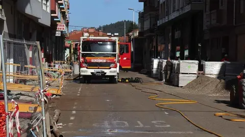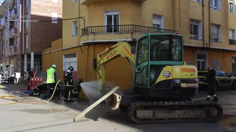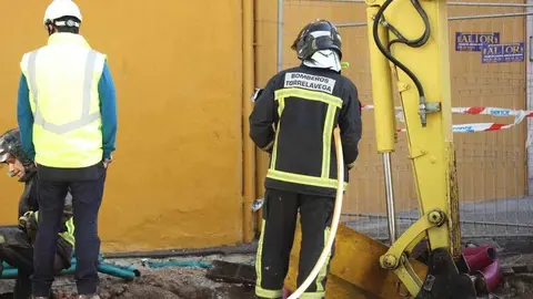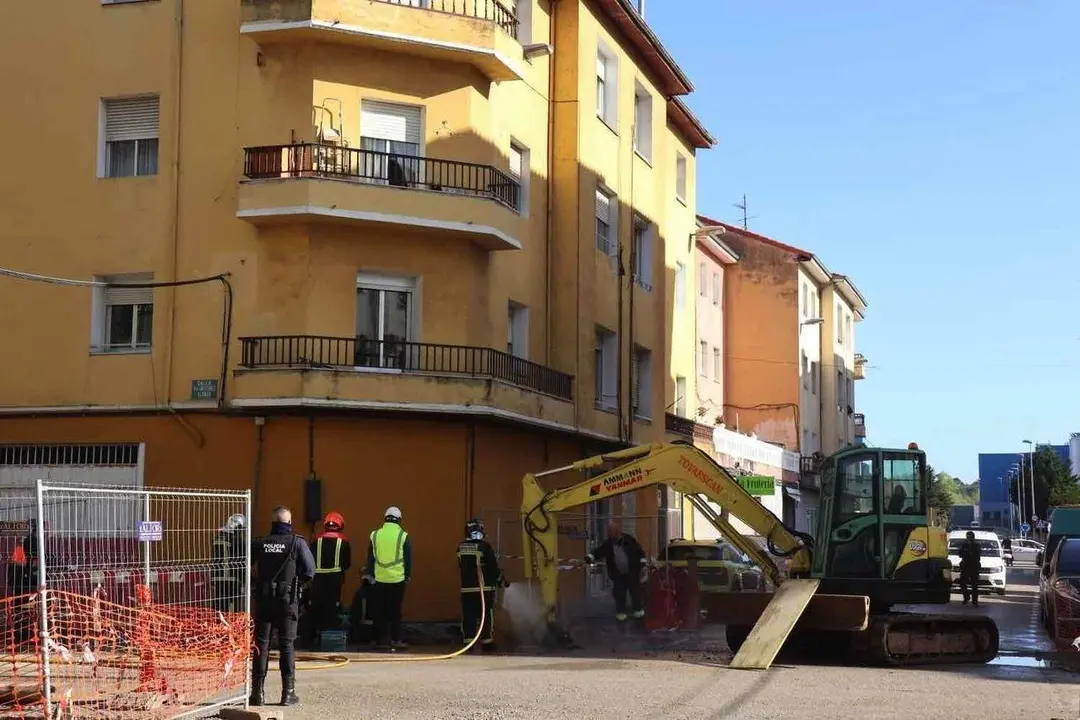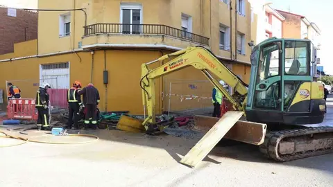 Las obras de mejora en la calle José Gutiérrez Alonso de Torrelavega provocaban la rotura de una tubería de gas con una pala tal como vemos en las imágenes.