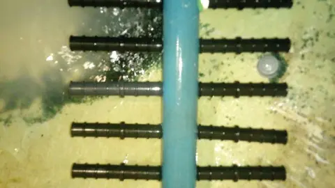 Una vez reparado los filtros se abrieron los circuitos para verificar su funcionamiento, pese a la reparación, en esta actuación se comprobó que seguían saliendo piedras por lo que se procedió a la limpieza y vaciado del segundo filtro, origen de la expulsión de las piedras ya que tenía rotas las crepinas (componente del filtro).