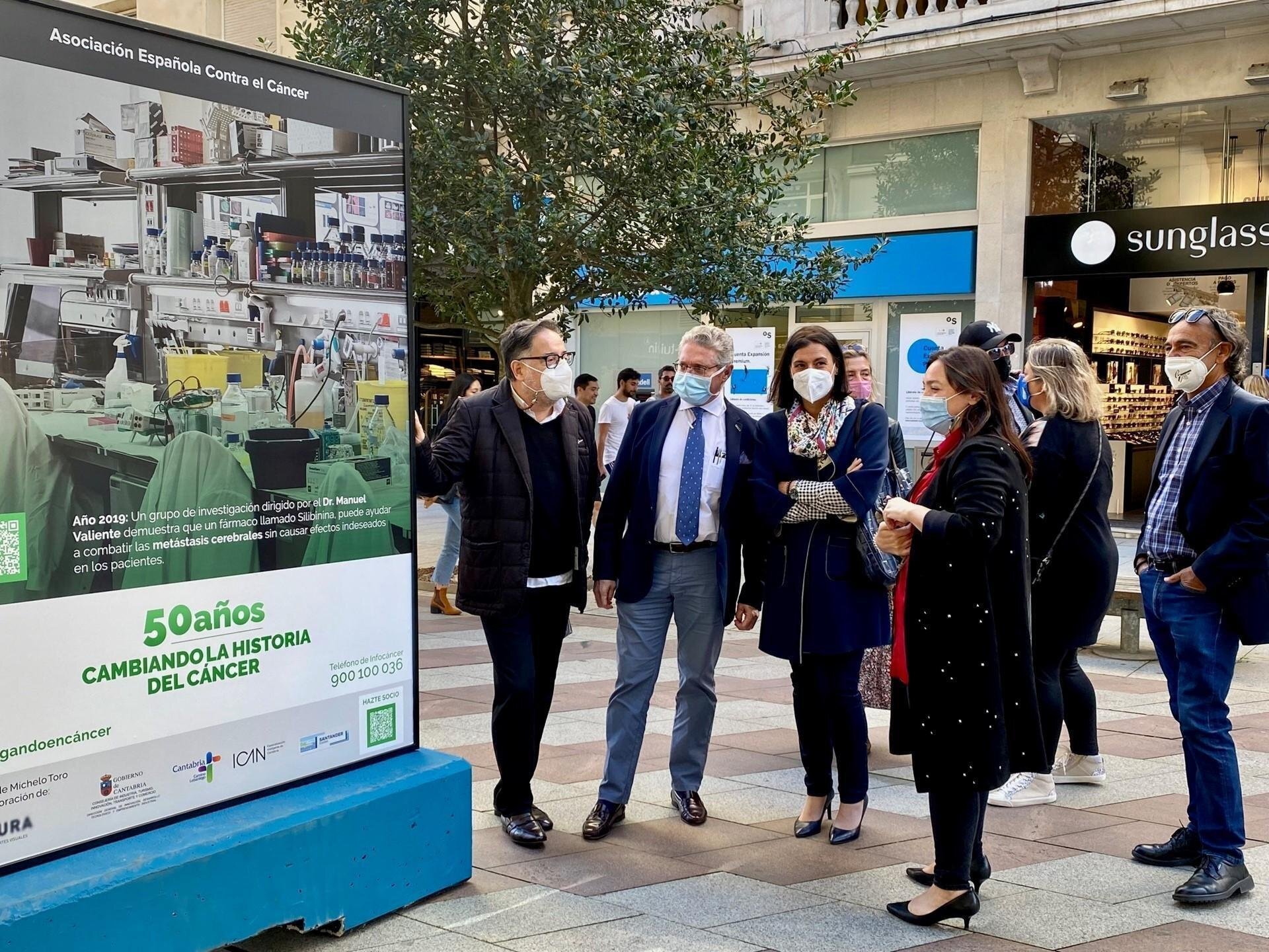 La Asociación Española contra el Cáncer (AECC) ha inaugurado una exposición fotográfica en la calle Juan de Herrera de Santander en la que se recogen algunos de los avances científicos más importantes en sus 50 años investigando esta enfermedad.