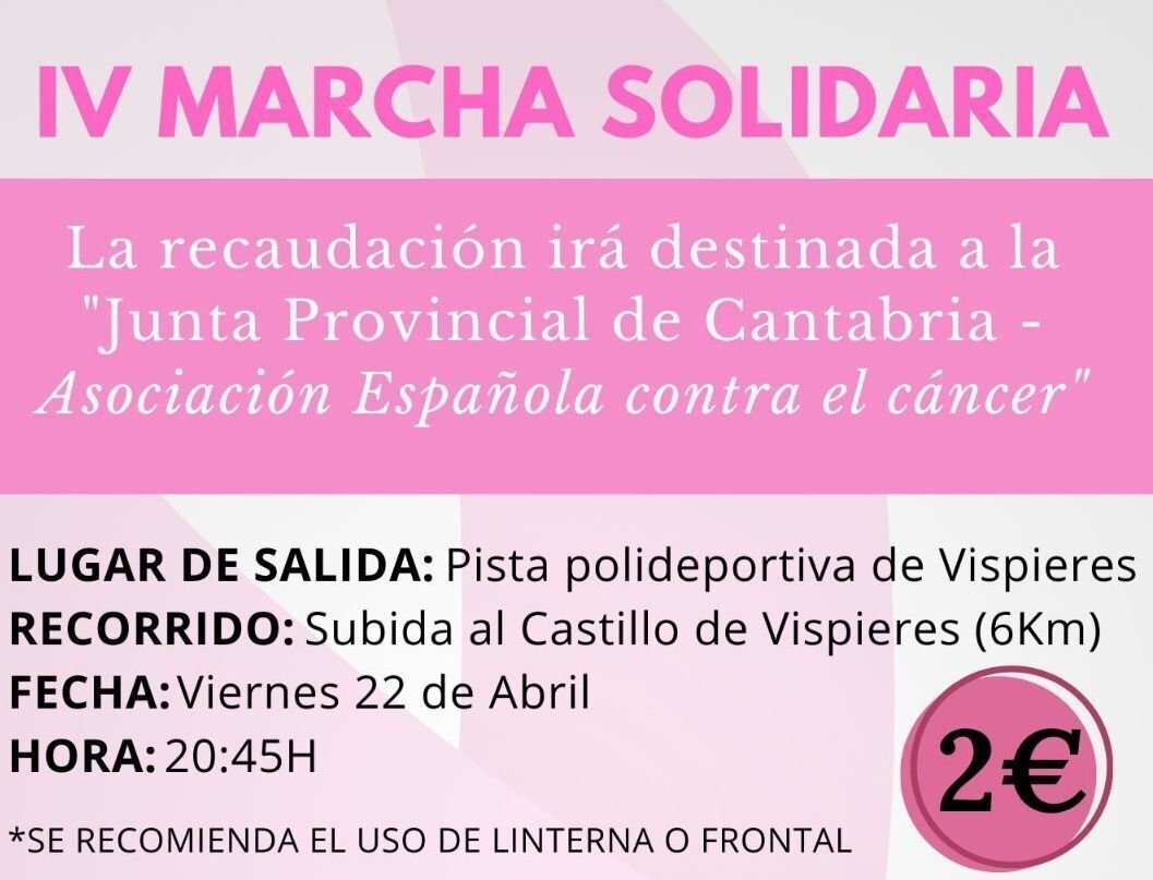 La marcha se celebrará el 22 de abril a las 20.45 horas. Comenzará en la pista polideportiva de Vispieres y, en un total de seis kilómetros, los participantes subirán al Castillo y regresarán a la pista polideportiva.