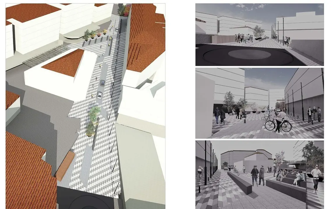 Asimismo, se realizaran nuevas soleras para el vial semipeatonal y plaza pública, diferenciando zonas de uso peatonal y zona de trafico ocasional, el acceso al garaje particular, marcando las distintas zonas. Igualmente se ejecutara una red de evocación de agua de lluvia de la plaza mediante un conjunto de rejillas ocultas y la reinstalación de alumbrado público junto a nuevo mobiliario urbano.