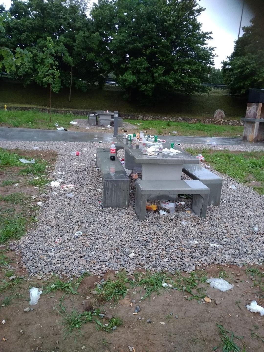 La edil del área, Maica Melgar, ha informado en un comunicado del estado en el que los servicios de limpieza municipal han encontrado dicho área esta mañana, "convertida en un improvisado botellodromo, lleno de latas, botellas, papeles y restos de comida, a pesar de la existencia de contenedores de basura en una zona anexa".