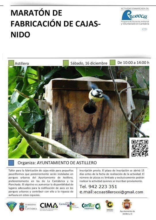 La Concejalía de Medio Ambiente del Ayuntamiento de Astillero ha organizado un taller de construcción de cajas nido para el próximo sábado, 16 de diciembre, entre las 10.00 y las 14.00 horas, una iniciativa impulsada en colaboración con SEO/BirdLife y enmarcada en el programa de voluntariado ambiental PROVOCA de Cantabria.