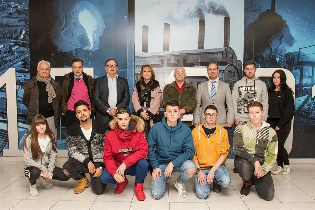 El acto de entrega de las becas tuvo lugar en el salón de actos de la factoría y reunió a becarios y familias, así como a los representantes del tribunal encargado de elegir a los beneficiarios, responsables de Ferroatlántica y la concejala de Cultura de El Astillero, María Ángeles Eguiguren.