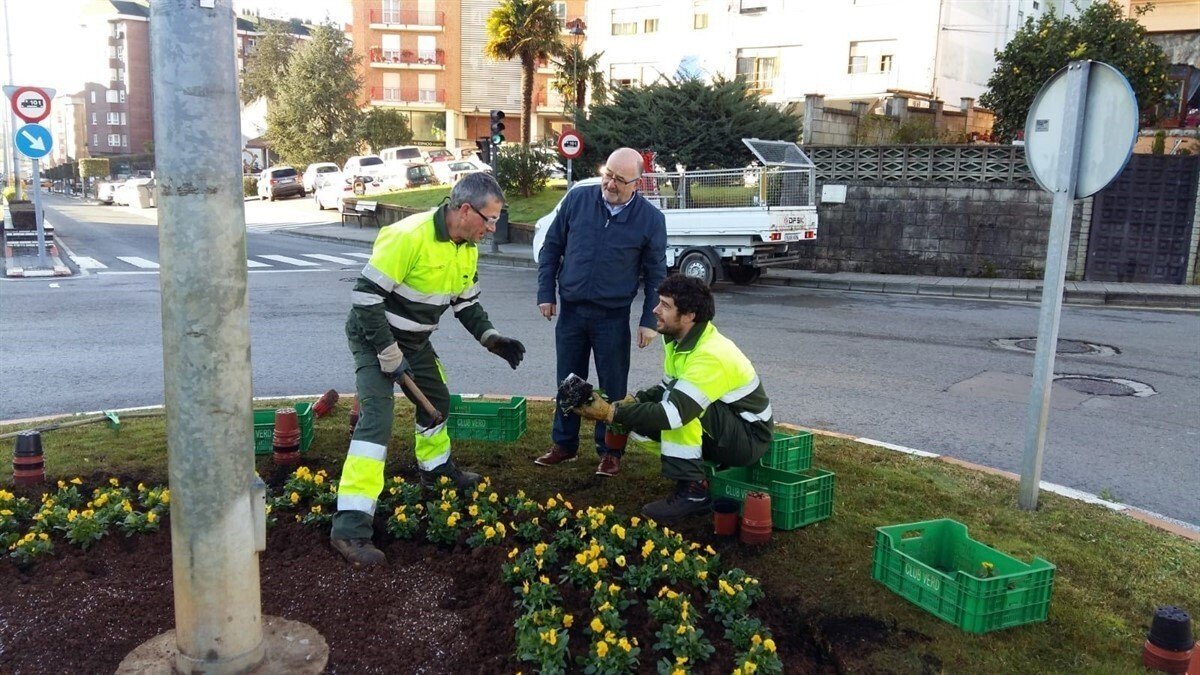 Las flores son pensamientos y violas que se están colocando en las rotondas y jardineras de la Avenida de Bilbao, en las jardineras de la Avenida de la Concordia y en el entorno de la calle Eulogio Fernández Barros.