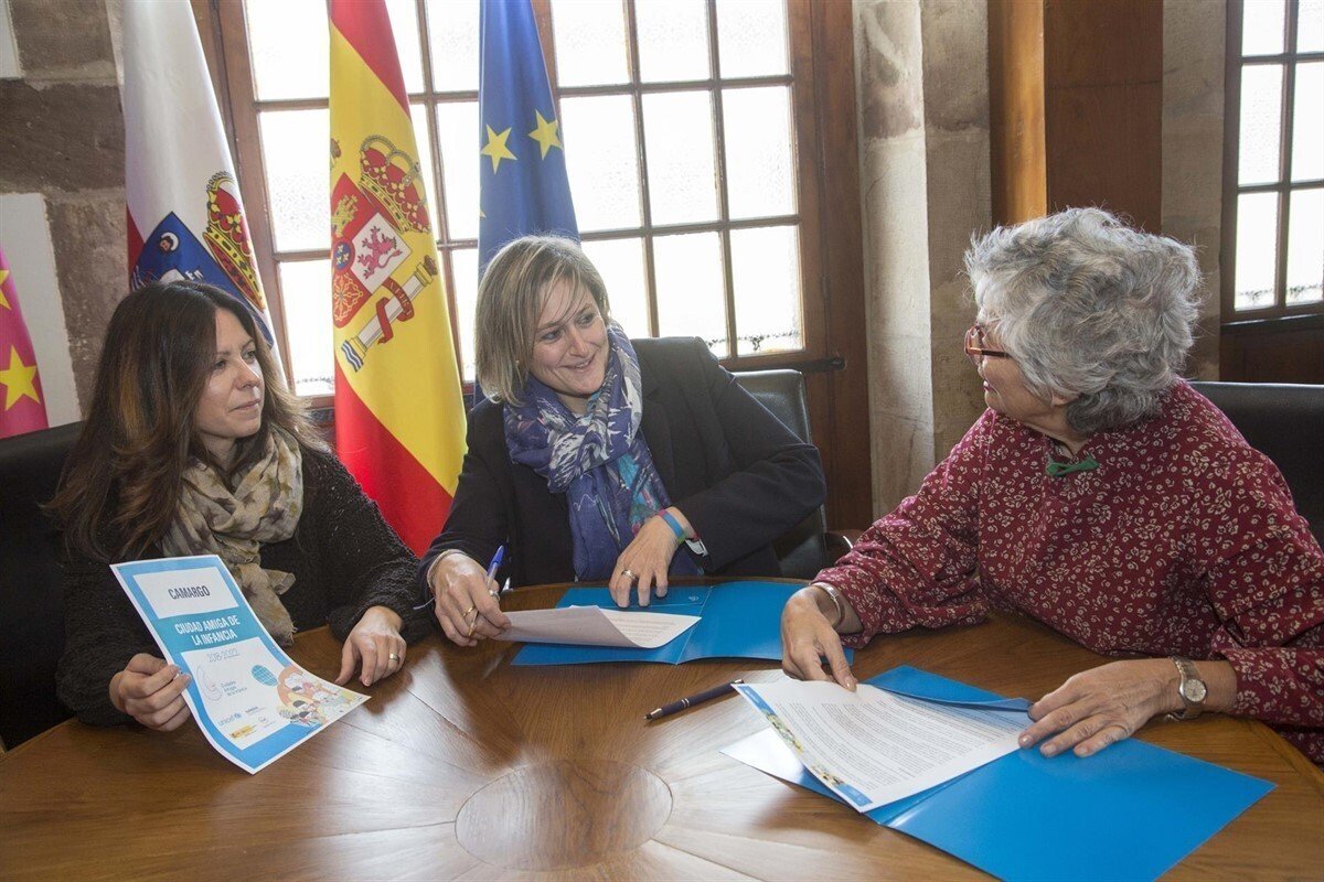 La alcaldesa de Camargo, Esther Bolado, acompañada por la concejala de Educación, Infancia y Juventud, Jennifer Gómez, ha firmado con la presidenta del Comité Cantabria en nombre de UNICEF Comité Español, Esperanza Botella, el convenio que ratifica el reconocimiento otorgado al Ayuntamiento el pasado 27 de noviembre de 2018 como Ciudad Amiga de la Infancia.