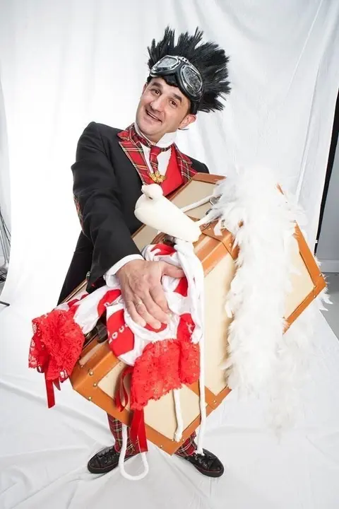 Enfundado con una peluca y unas gafas de piloto y convertido en un personaje alocado, disparatado y con mucha energía, este "transgresor mago", que cuenta con más de 15 años de trayectoria, ofrecerá un espectáculo de calle para todos los públicos, "capaz de sacar una sonrisa al más pequeño y de sorprender al más grande, y que contará además con un pre-show que no dejará indiferente a nadie", destaca el Ayuntamiento en nota de prensa.