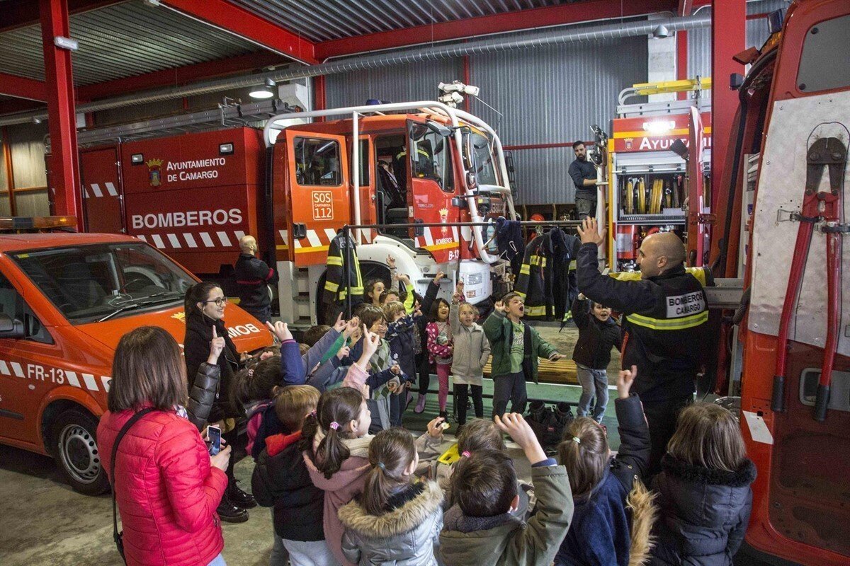 Alumnos del Colegio Matilde de la Torre han visitado hoy el parque de bomberos profesional de Camargo para conocer de cerca la labor que realizan los integrantes del Servicio de Extinción de Incendios de Camargo (SEIC), actividad organizada en el marco de la jornada de puertas abiertas que se celebrará este viernes, día en el que se conmemora el patrón de los bomberos, San Juan de Dios.