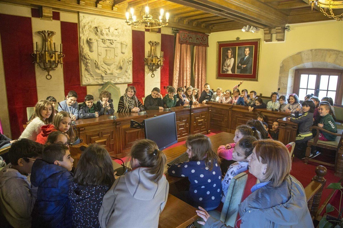 La alcaldesa de Camargo, Esther Bolado, ha mantenido esta mañana un encuentro con medio centenar de alumnos del Colegio Matilde de la Torre, con motivo de la visita que los estudiantes han efectuado a las dependencias del Ayuntamiento de Camargo dentro de las actividades impulsadas por la Escuela de Medio Ambiente.