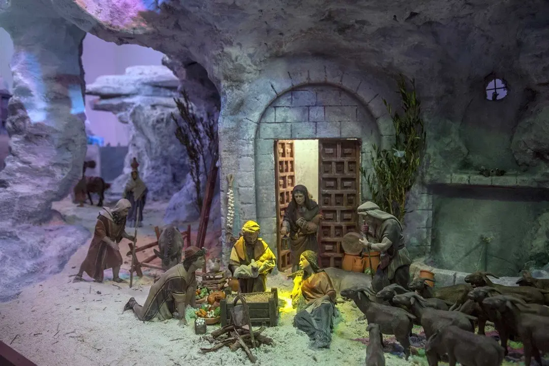Según han explicado, este año el Belén ha cambiado de emplazamiento "para dotarlo de un protagonismo individualizado debido a su calidad y a su gran interés artístico", ya que el montaje está formado por más de una treintena de figuras de 20 centímetros, muchas de ellas adquiridas recientemente al artista sevillano José Ángel Oviedo, de la Escuela Madrileña de J.L. Mayo, formando todas ellas un "conjunto de gran belleza".