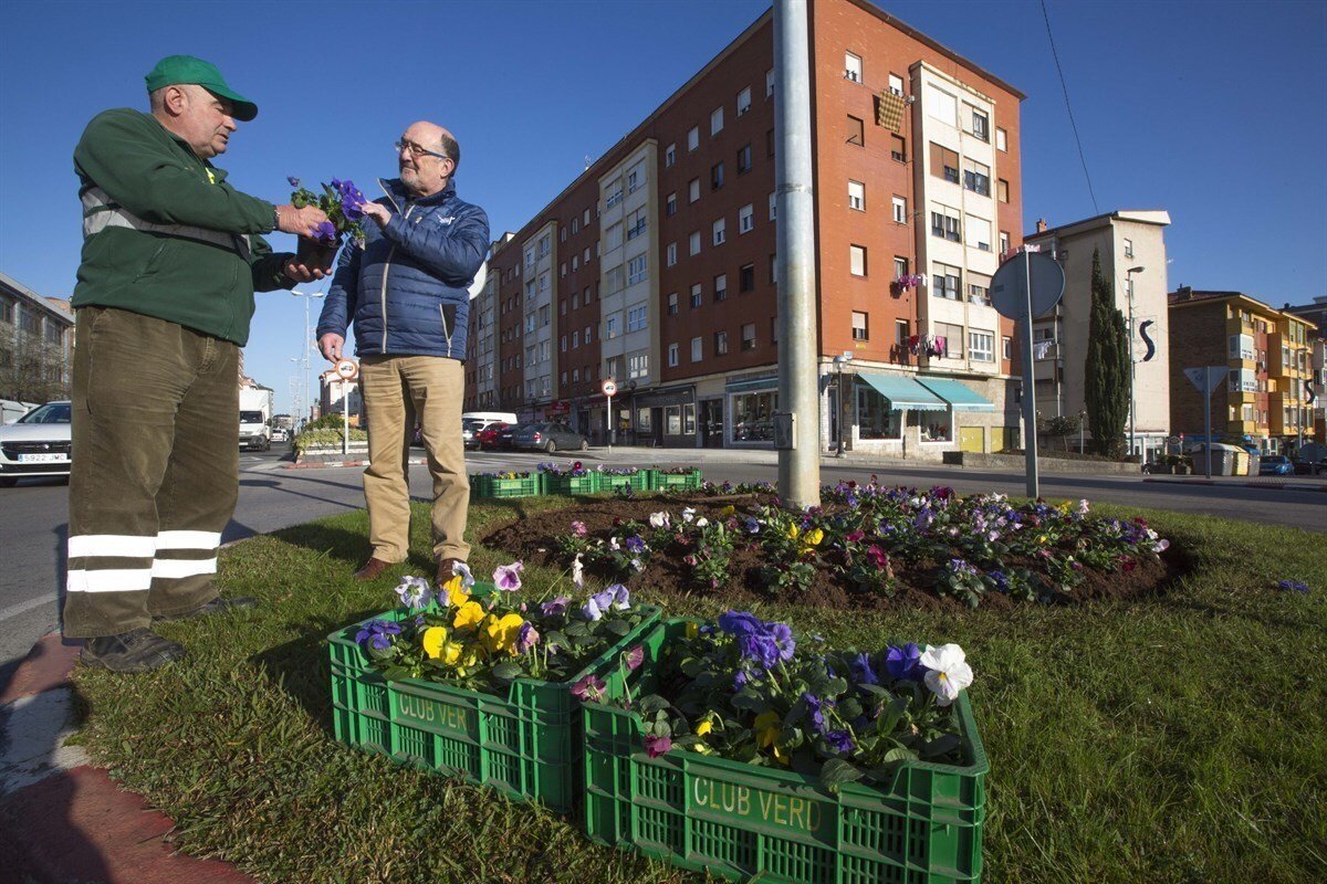 El Ayuntamiento de Camargo está llevando a cabo estos días los trabajos de colocación de las nuevas plantas y flores ornamentales en los espacios públicos del municipio, como la glorieta de Las Palmas o la de la calle Concha Espina, con especies florales como pensamientos y prímulas y otras especies arbustivas propias del invierno.