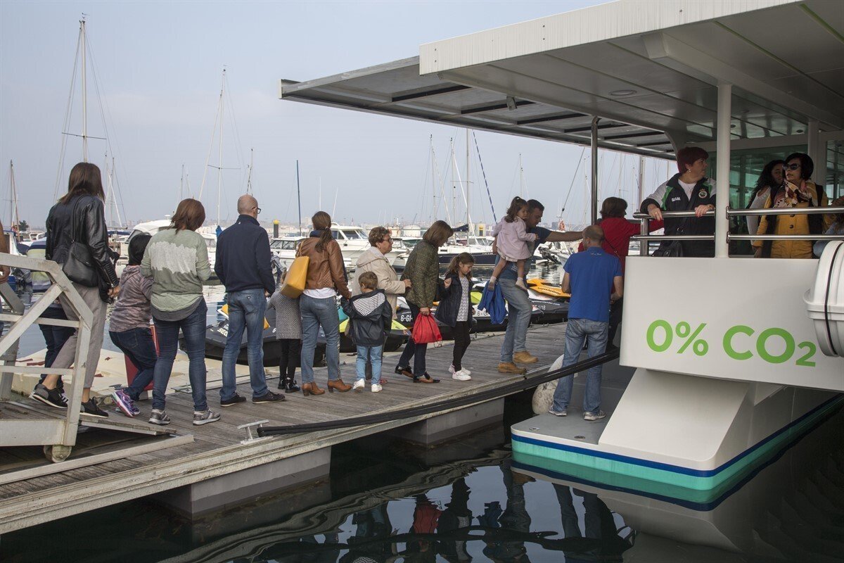 Más de medio centenar de vecinos del municipio han recorrido este sábado la Bahía en el primer barco de pasajeros de Europa que funciona íntegramente con energía electrosolar y que ha sido construido en las instalaciones de Metaltec Naval en el polígono de Raos.