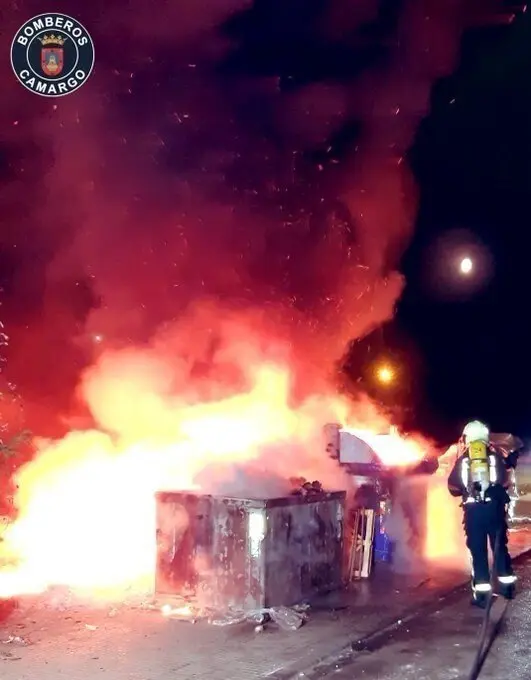 Los bomberos de Camargo han sofocado esta noche el fuego declarado en dos contenedores del Polígono Industrial La Maruca, en Muriedas, que ha tenido especial virulencia por los objetos depositados en ellos.