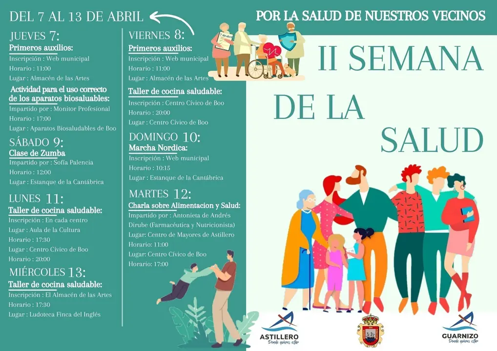 El Ayuntamiento de Astillero celebra del 7 al 13 de abril la II Semana de la Salud que, a través de diversas actividades, pretende fomentar prácticas saludables y generar nuevos hábitos de cuidado personal, alimenticio y de ejercicio físico.