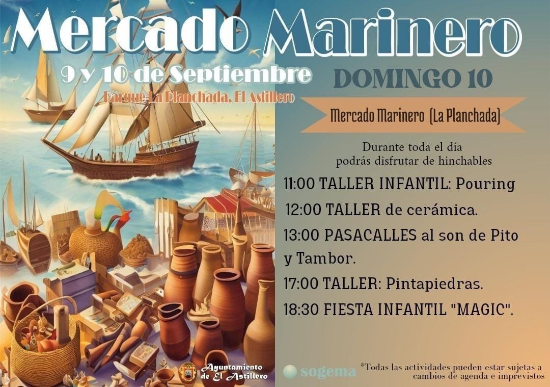 El Ayuntamiento de Astillero completará el fin de semana naval los días 9 y 10 de septiembre con un Mercado Marinero y actividades para niños y adultos de esta misma temática.