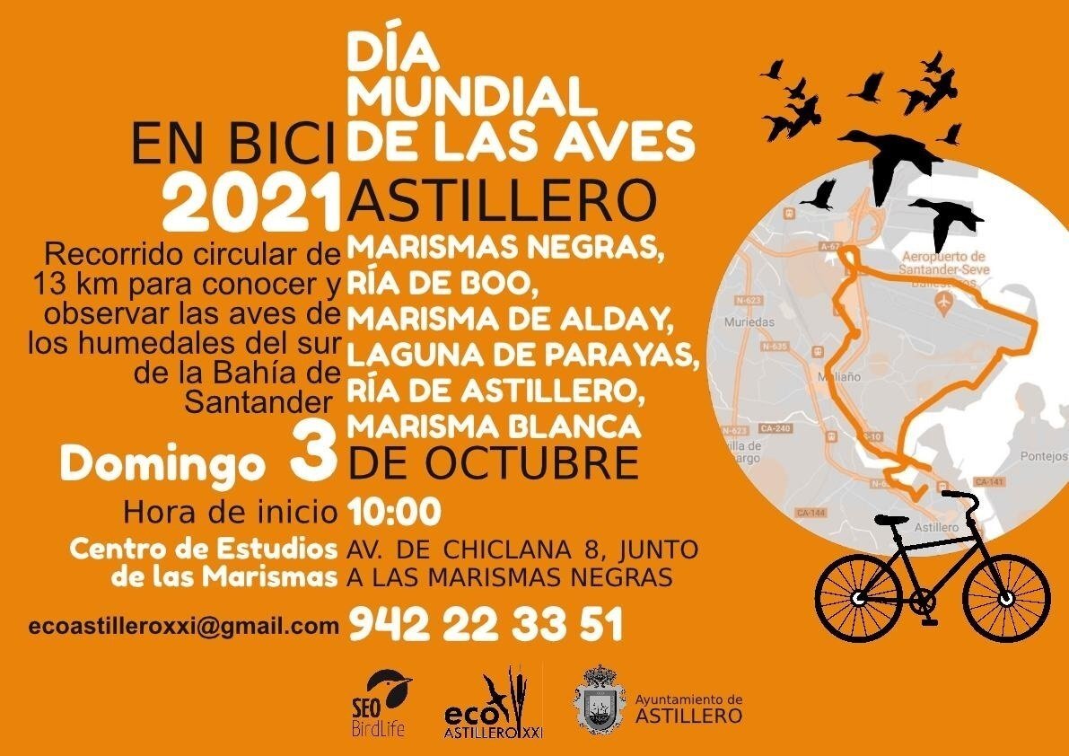 El Ayuntamiento de Astillero celebrará este domingo, 3 de octubre, el Día de las Aves con una actividad en bicicleta por las marismas del municipio y los alrededores, donde conviven diversas especies de aves.