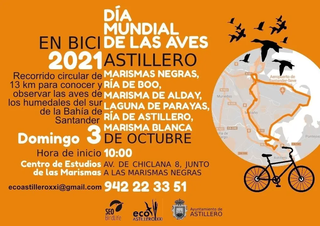 El Ayuntamiento de Astillero celebrará este domingo, 3 de octubre, el Día de las Aves con una actividad en bicicleta por las marismas del municipio y los alrededores, donde conviven diversas especies de aves.