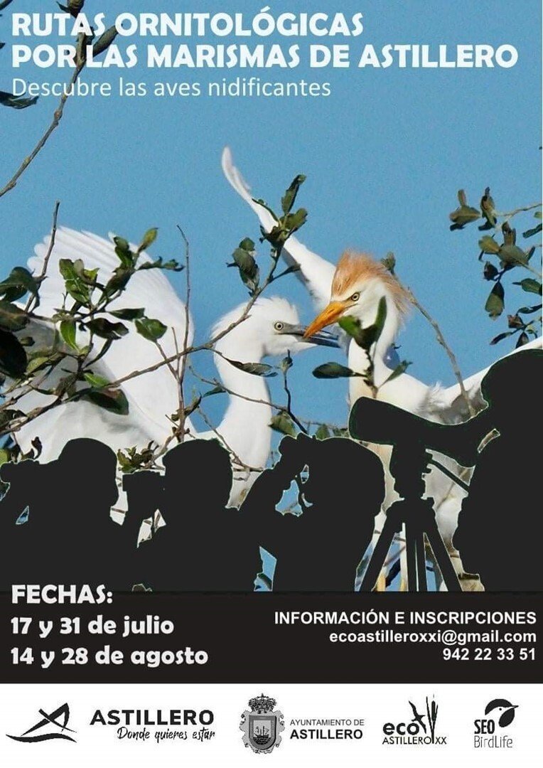El Ayuntamiento de Astillero ofrece, en colaboración con SEO/BirdLife y en el marco del proyecto de promoción turística 'Astillero y Guarnizo, donde quieres estar', un programa de rutas ornitológicas para disfrutar de las aves nidificantes en las Marismas de Astillero durante los meses de julio y agosto.