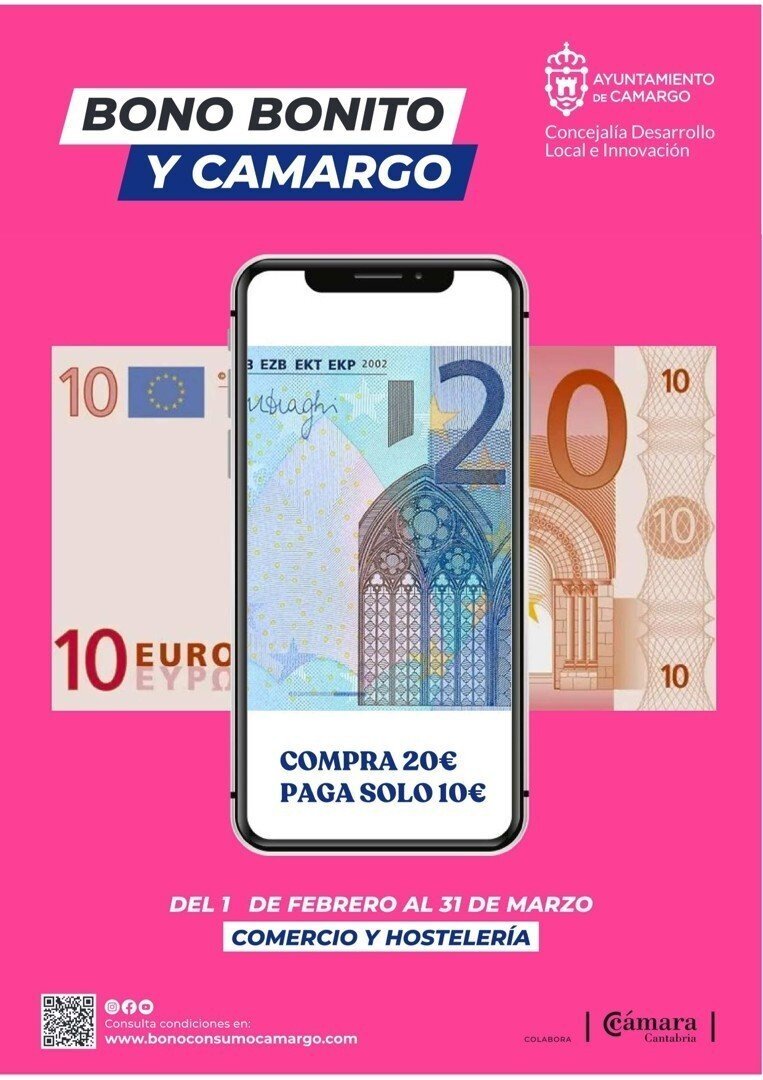 El Ayuntamiento de Camargo abrirá este miércoles, 1 de febrero, el plazo para que los usuarios puedan descargar sus vales y realizar sus compras en los establecimientos y locales de hostelería participantes en la fase de invierno de la campaña Bono Consumo Camargo, que se prolongará hasta el 31 de marzo.