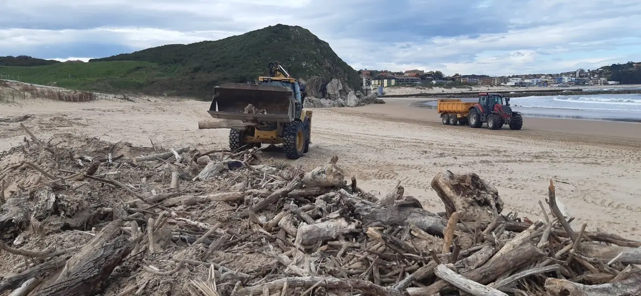 El Ayuntamiento de Miengo ha emprendido, una vez finalizadas las lluvias, labores de limpieza de las playas de Marzán, Usil y Usgo, que se prolongarán durante varios días por la alta cantidad de madera procedente de las rías.