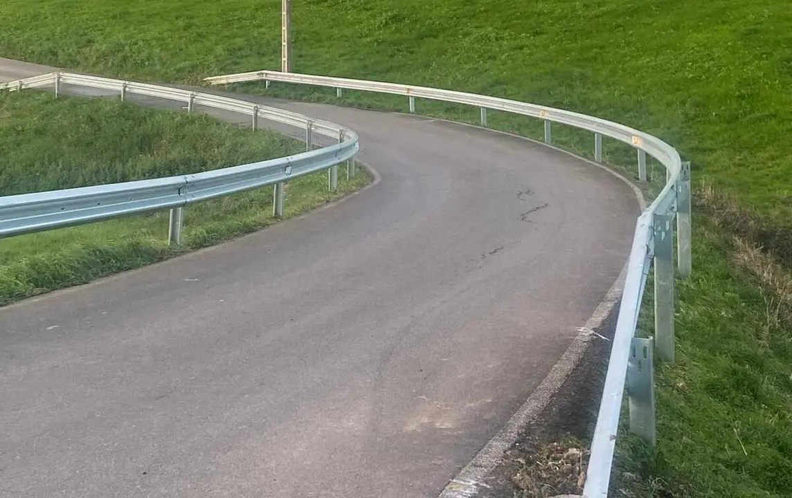 El Ayuntamiento de Bareyo más de 140 metros lineales de barrera de seguridad y elementos de abatimiento en puntos estratégicos del camino entre La Vioña y el barrio de San Pedruco, con el objetivo de mejorar la seguridad vial de varios tramos especialmente sensibles.