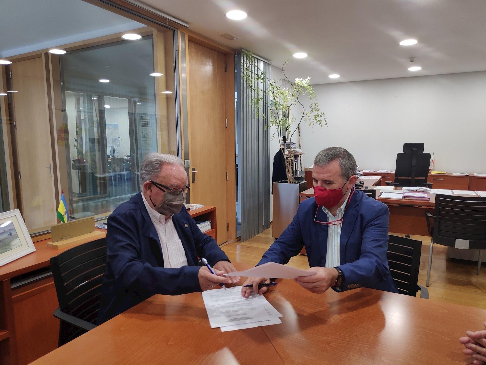 El alcalde de Santa Cruz de Bezana, Alberto García Onandía, y el presidente de la Universidad Permanente (UNATE), Modesto Chato, han firmado hoy el convenio de colaboración para el curso 2020-2021, que recoge una serie de actividades destinadas a fomentar el aprendizaje y la socialización de personas mayores de 50 años.
