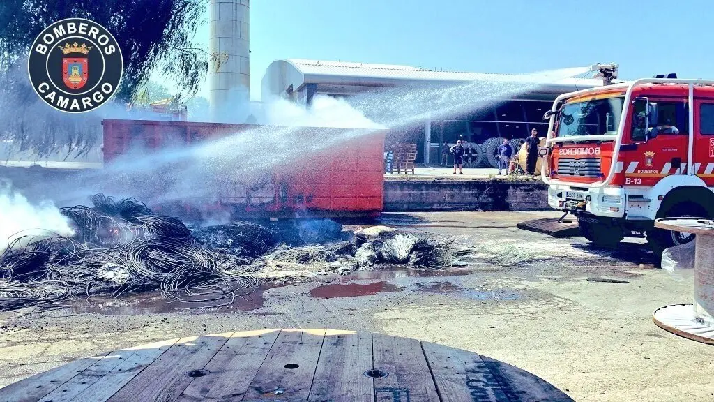 En la extinción del incendio de material de esta empresa estuvieron también presentes operarios de la compañía, según han informado los Bomberos de Camargo.