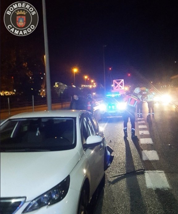 Los bomberos de Camargo liberaron anoche a un conductor de su coche tras un choque entre dos vehículos en la zona de Astillero, concretamente en la salida 6 de la S-10, sentido Santander.