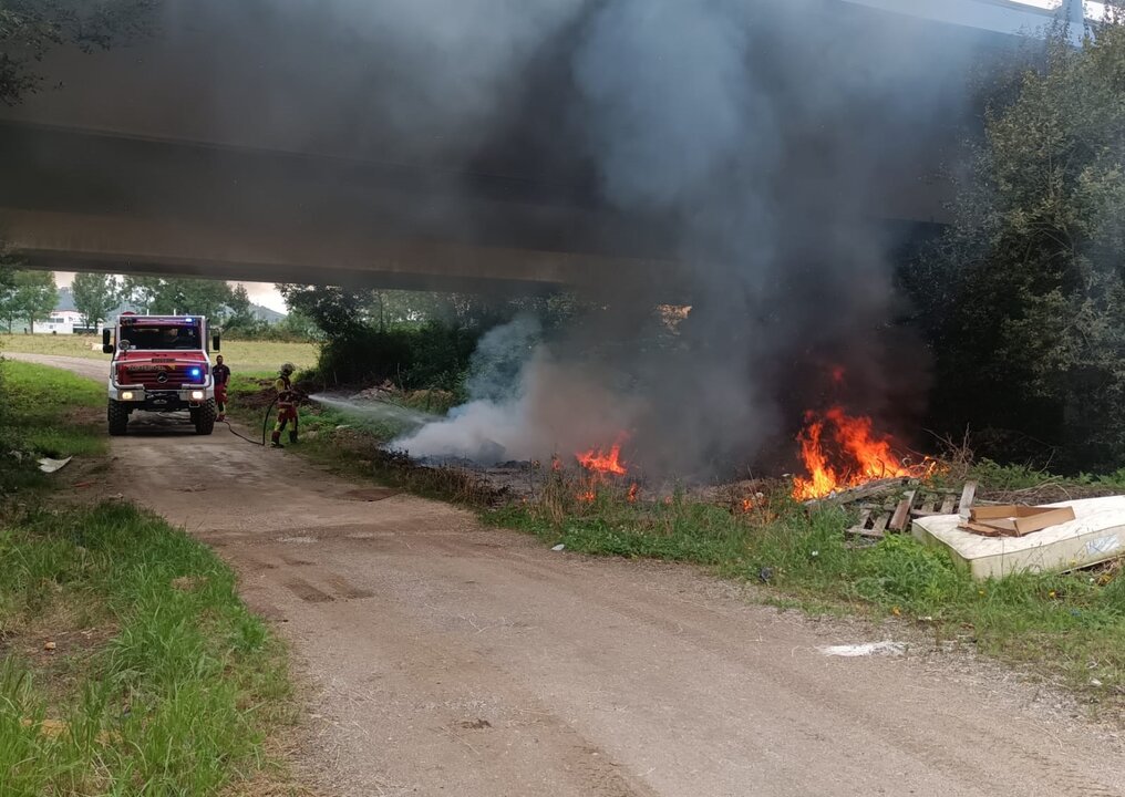 Bomberos sofocan un incendio en un vertedero ilegal debajo de la A-8 en Penagos