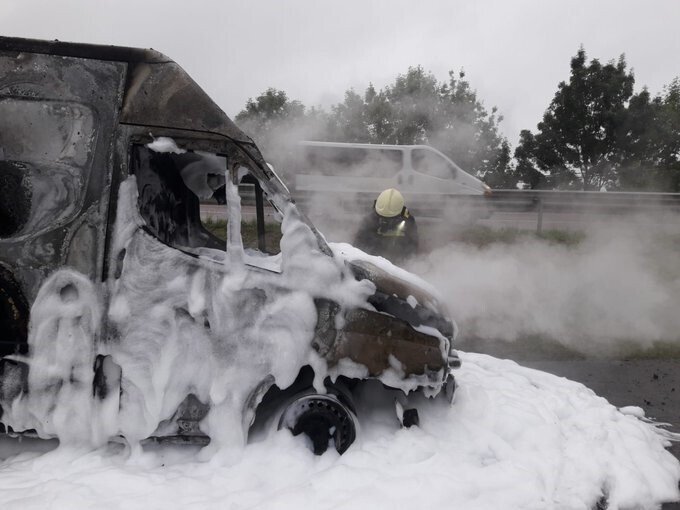 Una furgoneta ha resultado calcinada por el fuego cuando circulaba por la carretera de Liencres sin que se hayan producido heridos.