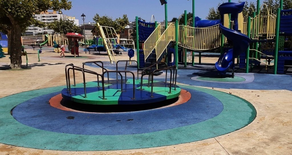 En concreto, la solución adoptada pasa por la retirada del pavimento de caucho actual, que presenta "numerosas" deficiencias y ha perdido capacidad elástica, y en su lugar se colocará un nuevo pavimento elástico con base de virutas de caucho negro y de espesor adecuado adaptado a las altura de caída de cada uno de los elementos.