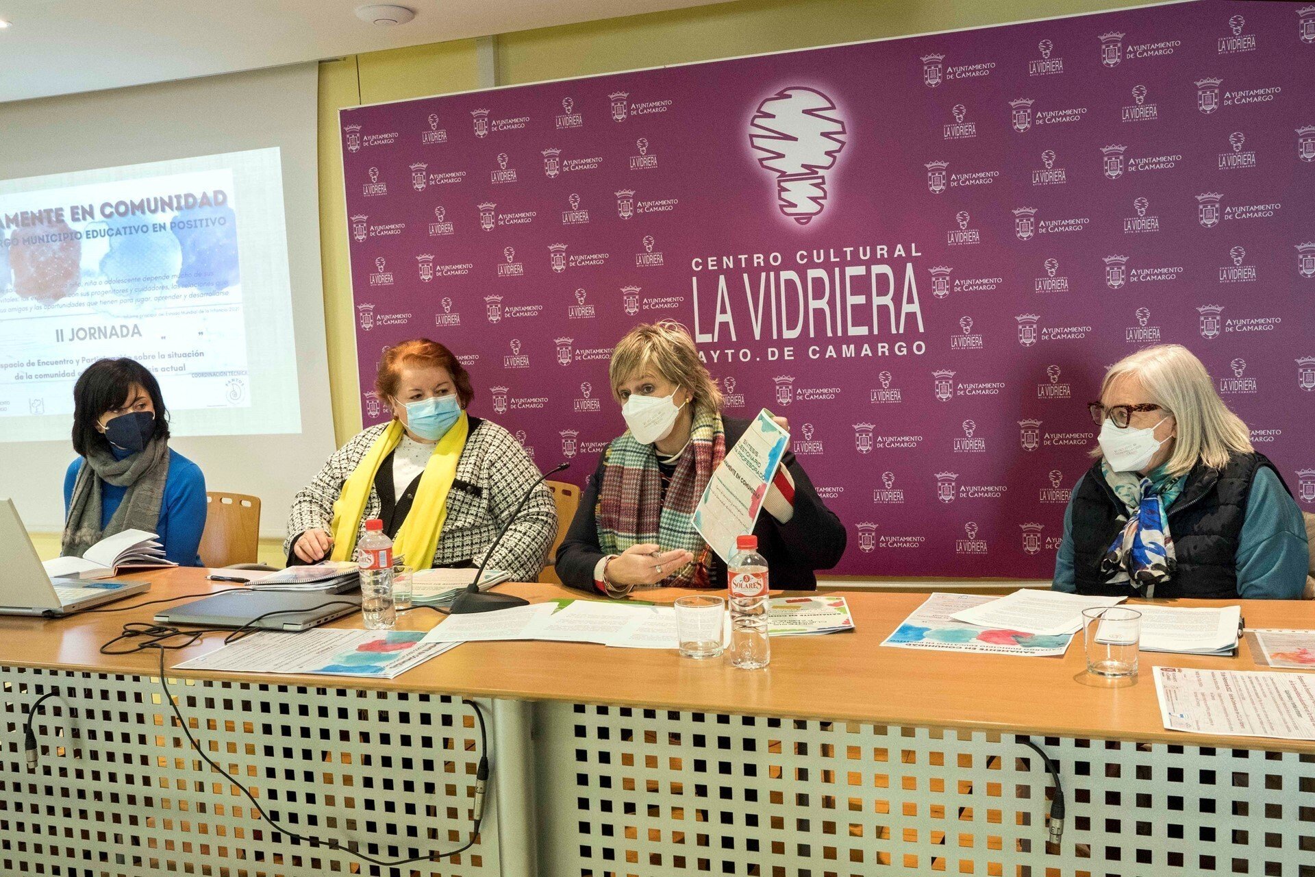 La alcaldesa de Camargo, Esther Bolado, junto con la concejala de Educación y Familias, Teresa Pilar Fernández, ha inaugurado hoy una nueva jornada de trabajo del programa 'Sanamente en Comunidad', para continuar analizando el impacto de la pandemia en la población infantil y juvenil del municipio, así como en la comunidad educativa y por extensión en el conjunto de la sociedad.