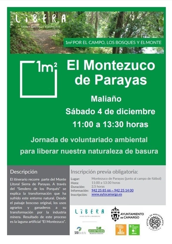 La Concejalía de Medio Ambiente del Ayuntamiento de Camargo celebrará el próximo 4 de diciembre, de 11.00 a 13.30 horas en la Sierra Litoral de Parayas, una nueva actuación de voluntariado destinada a concienciar a la población sobre el "grave problema" que supone para la biodiversidad de los montes la llegada de residuos.