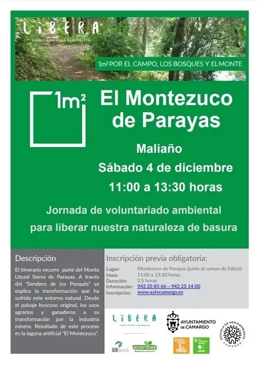 La Concejalía de Medio Ambiente del Ayuntamiento de Camargo celebrará el próximo 4 de diciembre, de 11.00 a 13.30 horas en la Sierra Litoral de Parayas, una nueva actuación de voluntariado destinada a concienciar a la población sobre el "grave problema" que supone para la biodiversidad de los montes la llegada de residuos.