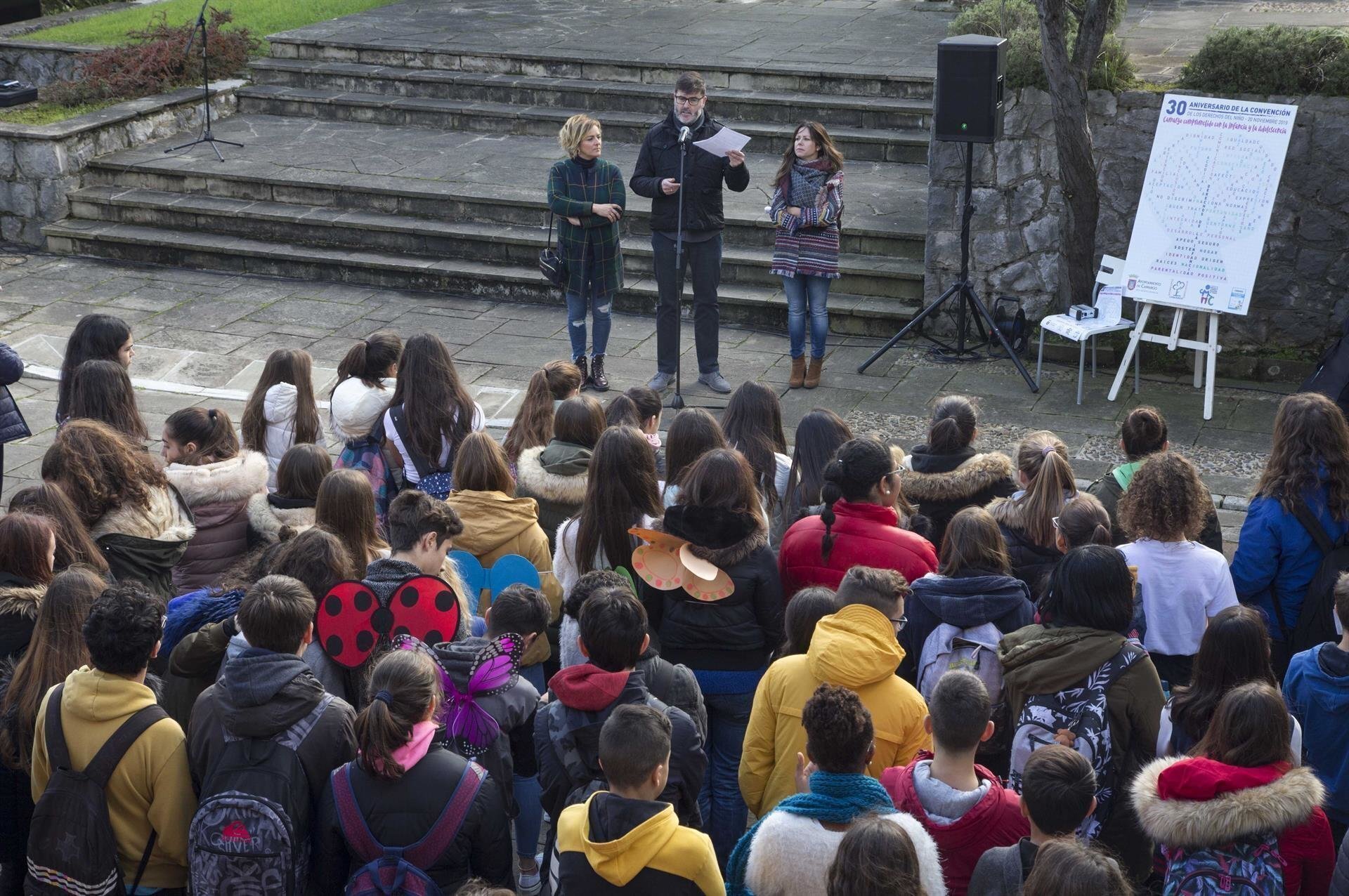 Los exteriores del Ayuntamiento de Camargo han acogido este miércoles un acto en el que el Consistorio y alumnos del IES Muriedas han mostrado su adhesión a la Declaración de Alcaldes y Alcaldesas de Ciudades Amigas de la Infancia efectuada con motivo de la conmemoración del 30 aniversario de la Convención sobre los Derechos del Niño.