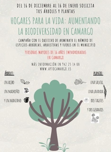 Este año la campaña se llevará a cabo bajo el lema 'Hogares para la vida: aumentando la biodiversidad en Camargo' y podrán tomar parte en ella personas mayores de 16 años empadronadas en el municipio.
