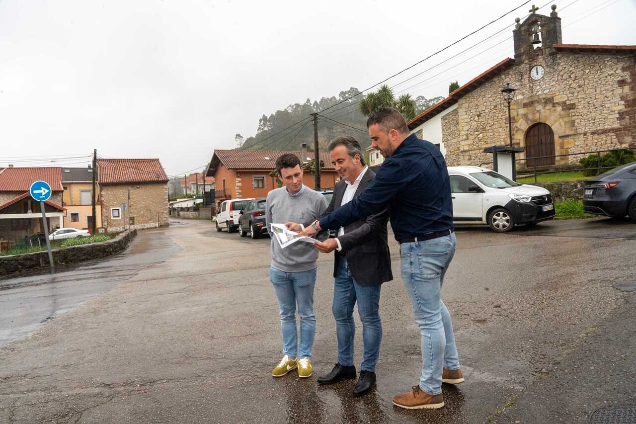 El regidor ha visitado el enclave donde se va a renovar parte de las tuberías junto al gerente de Veolia en Cantabria, Alejandro Bedia, y el alcalde pedáneo de Escobedo, Cristian Armada.