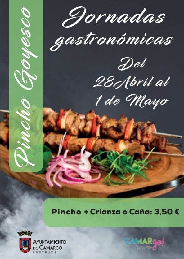 Camargo dará comienzo mañana jueves, 28 de abril, a las Jornadas Gastronómicas del Pincho Goyesco, que se van a prolongar hasta el domingo, 1 de mayo, dentro de las actividades programadas por la Concejalía de Festejos con motivo de la Fiesta Homenaje a Pedro Vealrde.