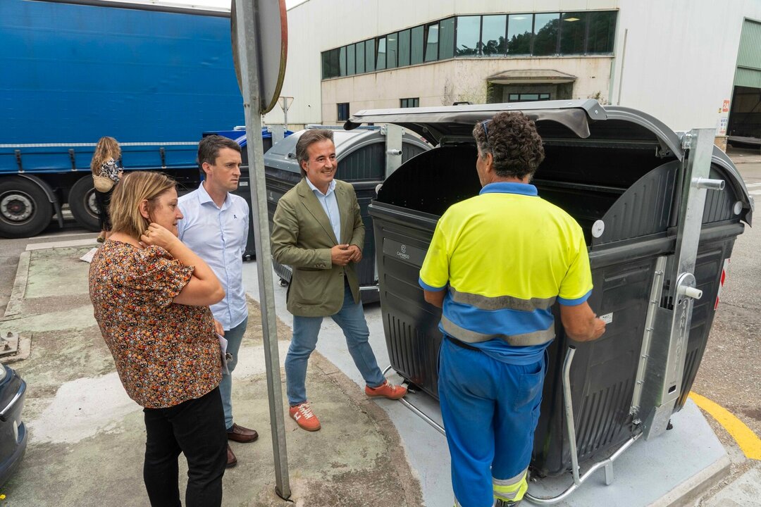 El alcalde, Diego Movellán, ha visitado este viernes el primer punto de contenerización que se ha instalado, en el Polígono de Trascueto, en Revilla, junto a los concejales de Servicios Generales y Medio Ambiente, Mave Castanedo y Cristian Armada, respectivamente.