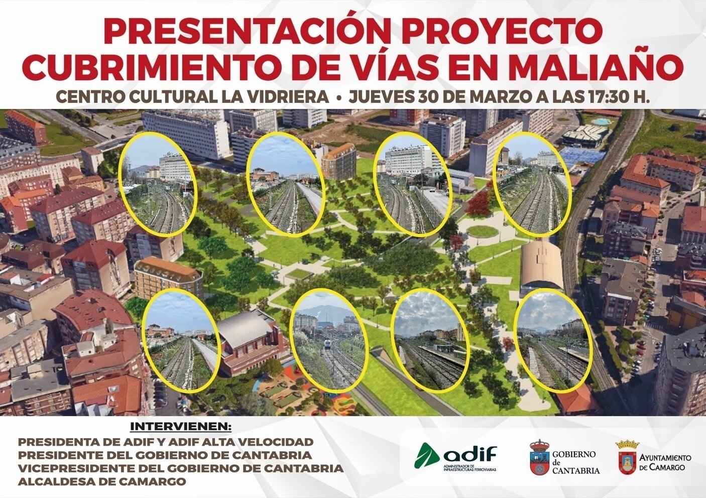 El Ayuntamiento de Camargo celebrará el próximo 30 de marzo un acto abierto al público en el centro cultural La Vidriera para presentar el proyecto del cubrimiento de las vías del tren. Será a las 17.30 horas, con entrada libre hasta completar aforo.