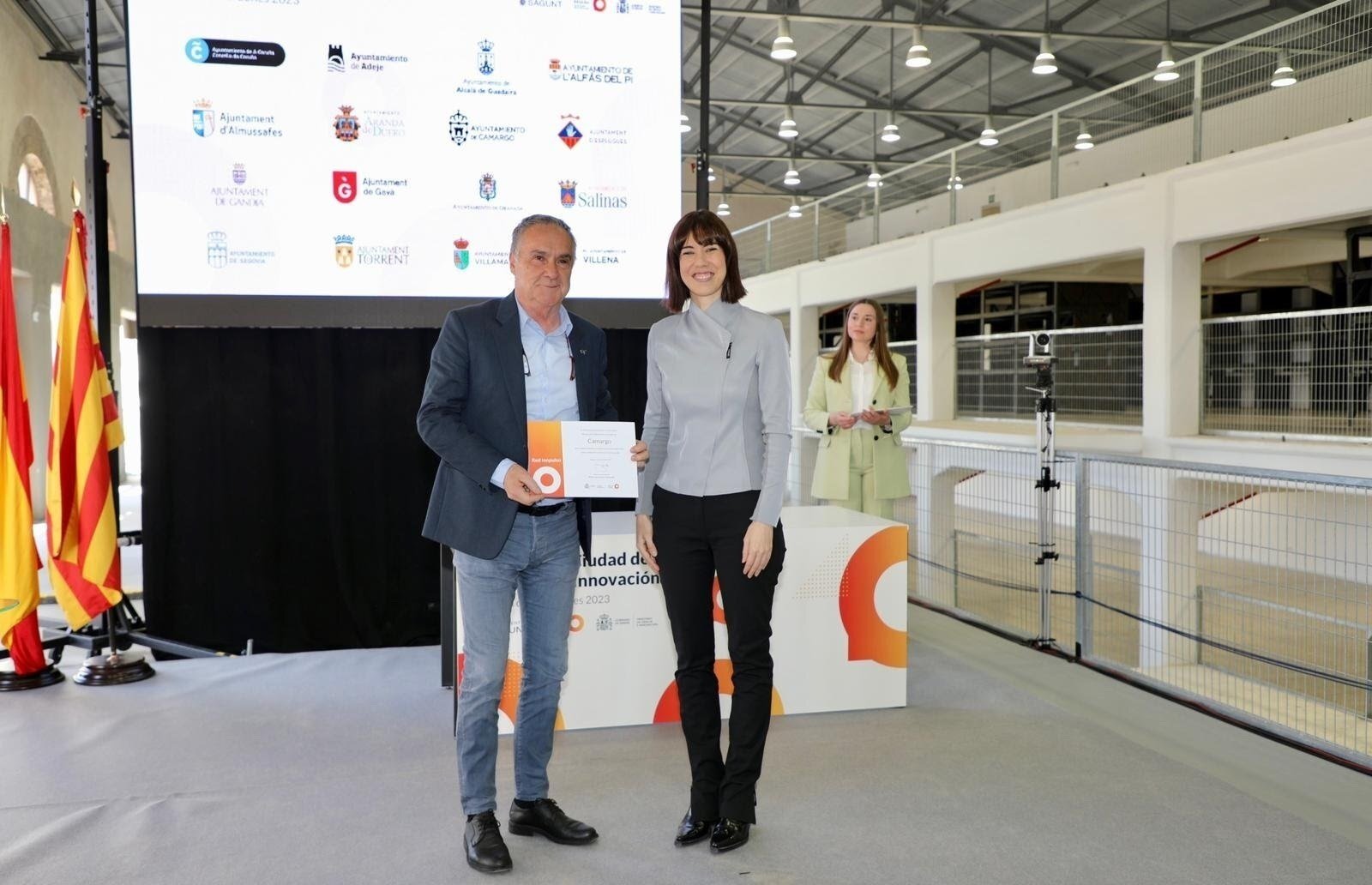 El concejal de Desarrollo Local del Ayuntamiento de Camargo, Eugenio Gómez, ha recogido este jueves de manos de la ministra de Ciencia e Innovación, Diana Morant, el diploma por el que se renueva la distinción 'Ciudad de la Ciencia y la Innovación' de la Red Innpulso con la que se reconoce el trabajo llevado a cabo para impulsar iniciativas que parten de la innovación para transformar el municipio y crear oportunidades de trabajo para su gente, en especial para los jóvenes.