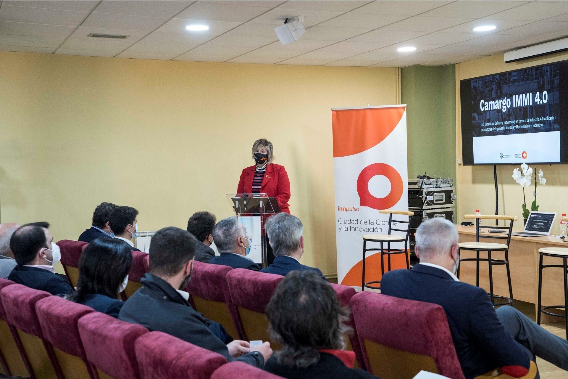 La alcaldesa de Camargo, Esther Bolado, el consejero de Industria, Turismo, Innovación, Transporte y Comercio del Gobierno de Cantabria, Javier López Marcano, y el concejal de Desarrollo Local, Eugenio Gómez, han presidido la jornada organizada por el Consistorio camargués y la Red Innpulso.