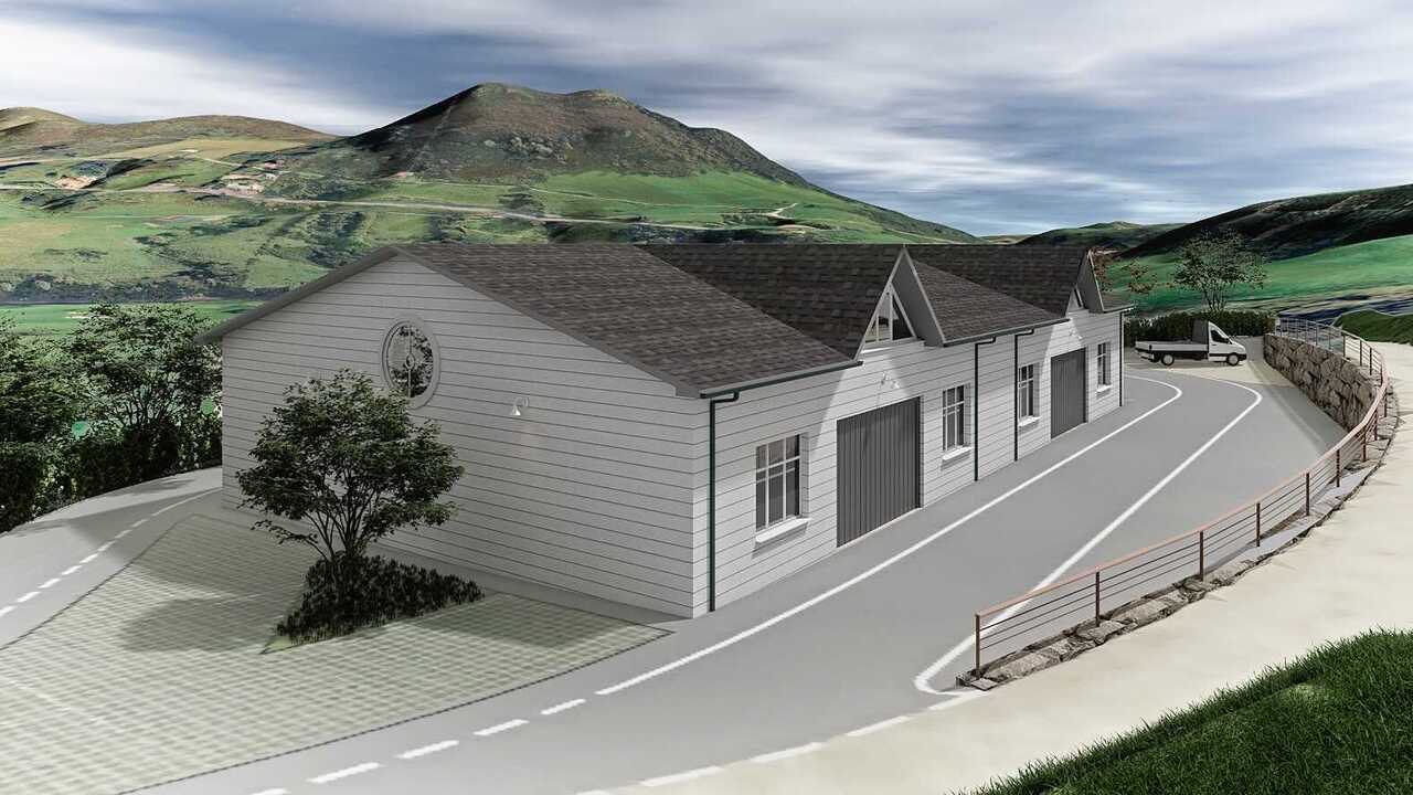 La construcción de hormigón contará con una envolvente estética de la cara exterior de acabados en textura de madera y la carpintería exterior se ejecutará en aluminio esmaltado de color verde 'prado', al igual que las puertas tipo persiana de acceso de vehículos. De esta forma, la nave multiusos estará totalmente integrada en el paisaje y entorno.