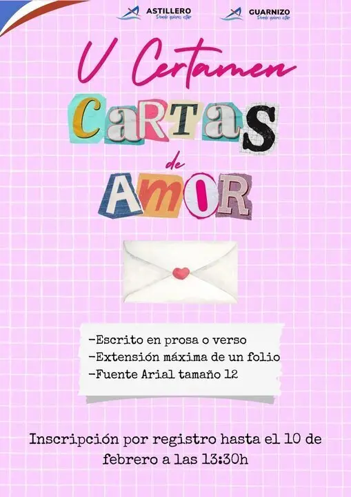 El Ayuntamiento de Astillero celebrará la Semana del Amor con la convocatoria del tradicional Concurso de Cartas de Amor, una iniciativa destinada a fomentar la creatividad literaria de los vecinos y celebrar la festividad de San Valentín con un toque cultural y romántico.