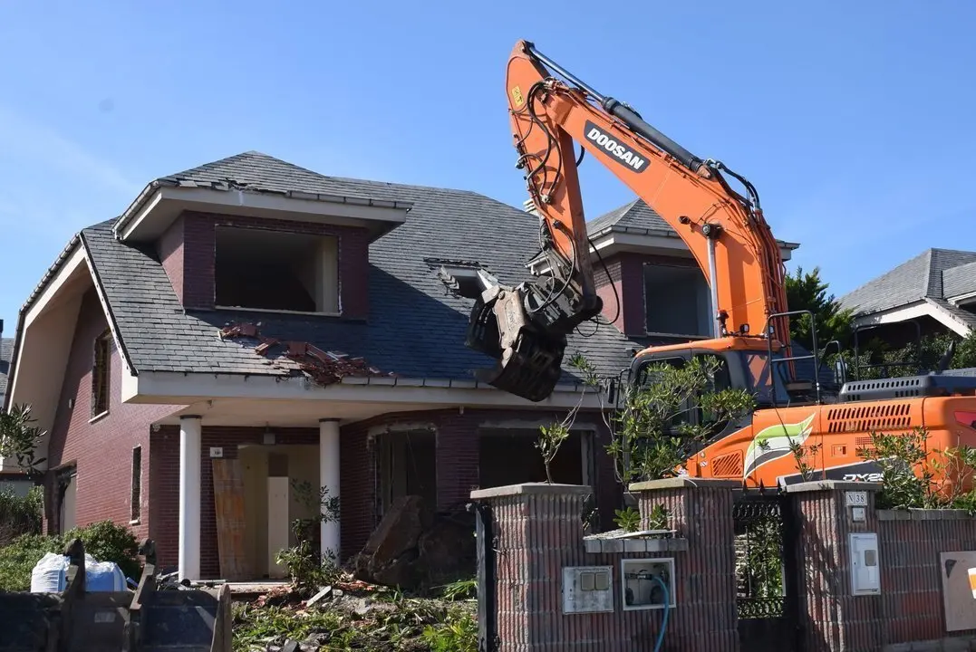 Las máquinas han iniciado esta mañana la demolición de cinco de las siete viviendas afectadas por sentencias de derribo de la urbanización Calas del Norte de Cerrias, en Liencres (Piélagos), cuyos propietarios ya han sido indemnizados tras llegar a un acuerdo con el Gobierno de Cantabria, a través de Gesvican.
