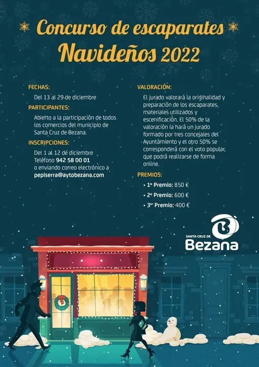 El certamen está abierto a todos los establecimientos comerciales ubicados en el municipio y la inscripción, que podrá formalizarse través del correo electrónico pepiserra@aytobezana.com o en el teléfono 942 58 00 01, permanecerá abierta hasta el 12 de diciembre.