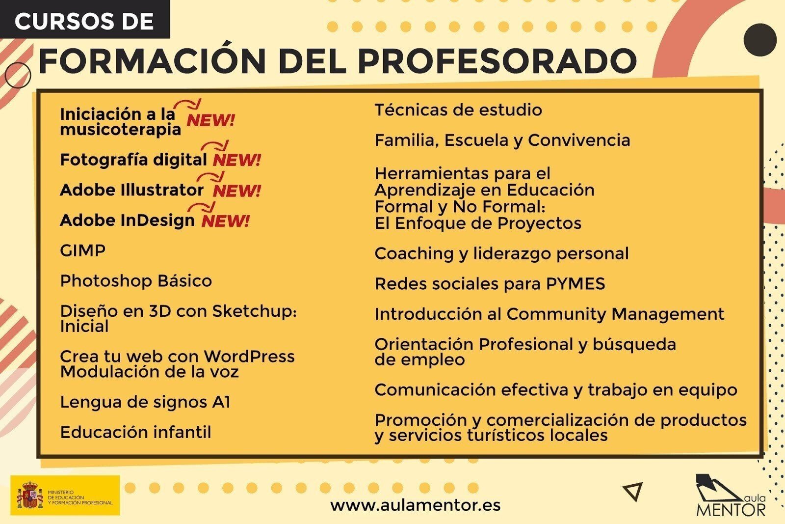 En concreto, son de iniciación a la musicoterapia, fotografía digital, Adobe Illustrator y Adobe InDesign.