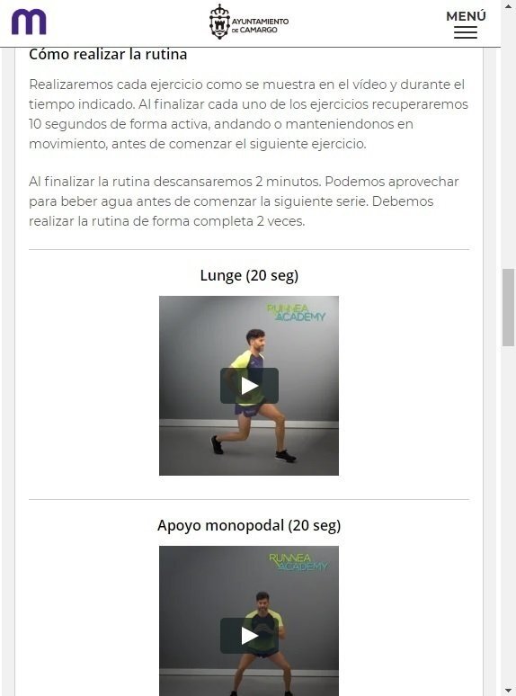 Se trata de una aplicación web a la que se puede acceder desde todos los dispositivos a través de la dirección https://www.muviment.com/training/aytocamargo/, que ha sido elaborada por Tech Friendly y Runnea, ha informado el Consistorio en nota de prensa.